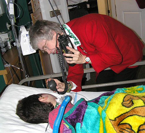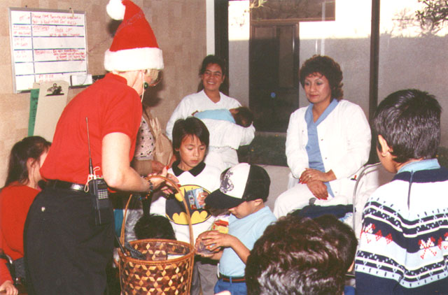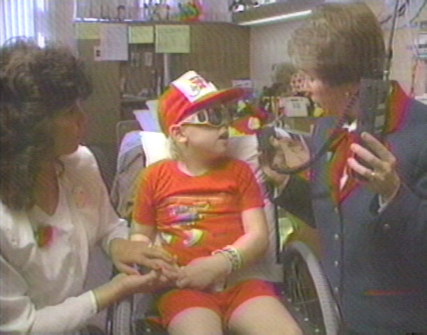 April was hospitalized in Los Angeles during Christmas 1982, but the show went on at CHOC. Winkie Sonnefield, Director of Physical Therapy at St. Jude, was the radio contact.