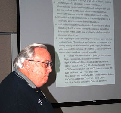 Starting in 2013, the group got information about communications for hospital laboratories from Dave West KI6EPI, Director of Laboratory and Cardiopulmonary Services at College Hospital in Costa Mesa.