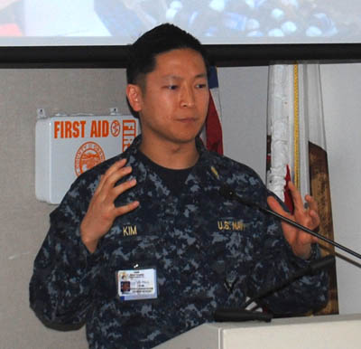 Lieutenant JG Paul Kim visited from Naval Hospital Camp Pendleton in 2014 and told the group about the new 500,000-square-foot hospital that had just opened on the base, replacing a hospital that was built in 1974.