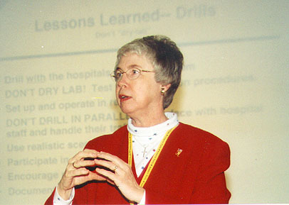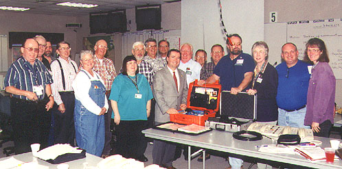 The annual workshop often included visits from hospital representatives and from city, county, state and national officials to recognize HDSCS for its volunteer service to medical facilities in the county. In addition to addressing the workshop, these VIPs could tour the EOC, Sheriff's dispatch, 911 answering point and HEAR/ReddiNet Central Point when the workshop was atop Loma Ridge.
